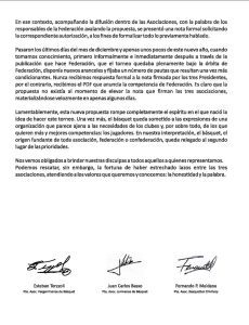 En el mismo comunicado, las entidades sostienen que la Federación hizo caso omiso a la propuesta original e incluso afirman que “se adueñó” de la idea, para luego presentar el formato que finalmente se aplicaría al Torneo Pre Federal 2026.